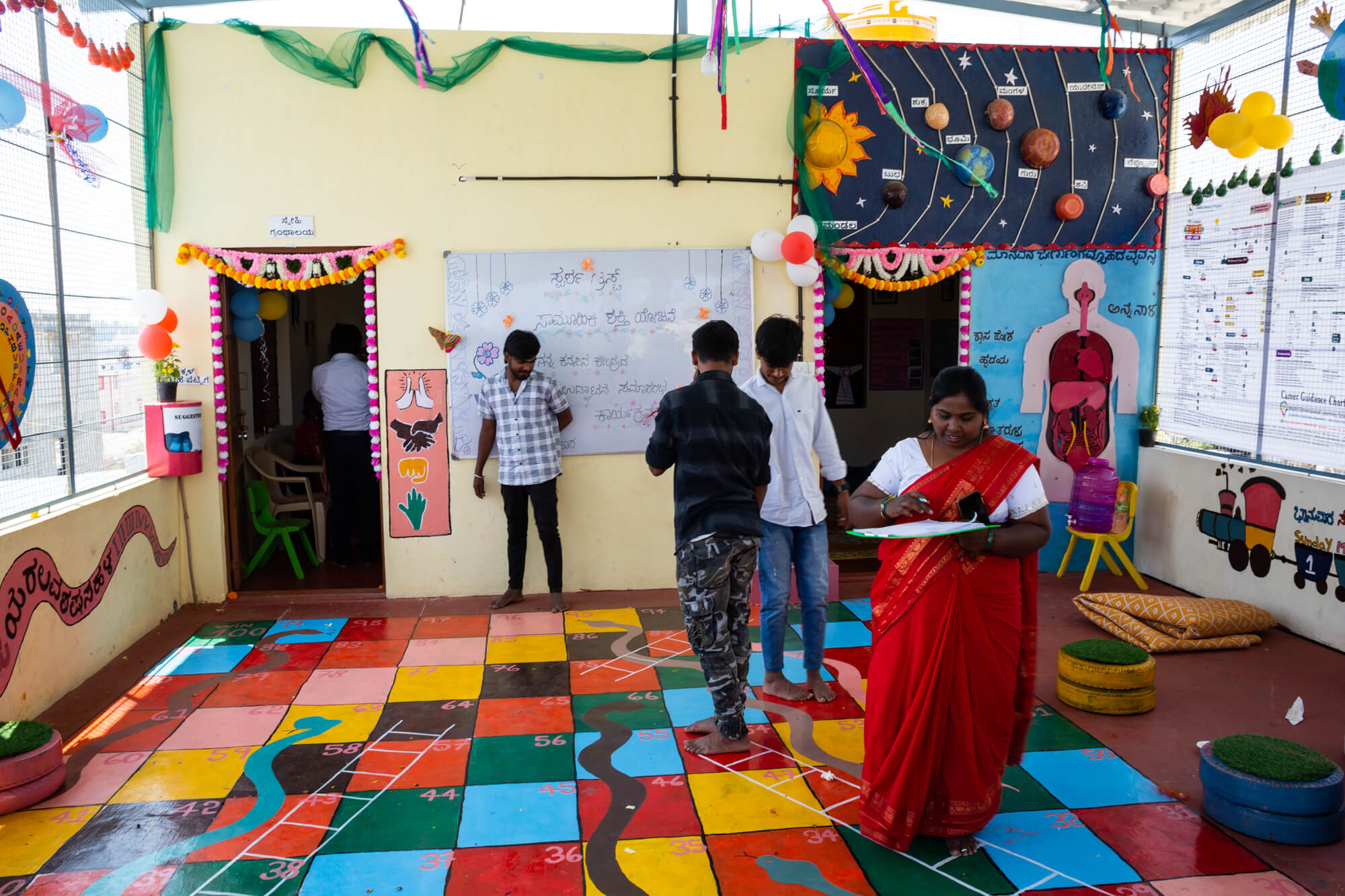 In Medi Agrahara, 22 children were identified as being out of school. Financial hardship, caregiving responsibilities, long commutes, and limited access to Kannada-medium education had pushed them away from classrooms. What was missing was a safe, consistent space for learning: a Community-Based Centre (CBC).